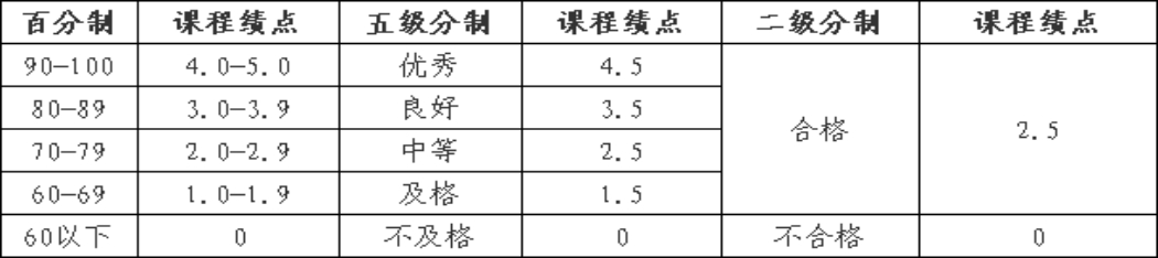 課程績(jī)點(diǎn)與課程考核成績(jī)的對(duì)應(yīng)關(guān)系為: