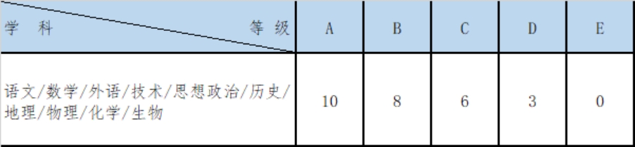 2.普高考生學(xué)考成績(jī)等級(jí)折算文化成績(jī)W,所有學(xué)考科目均計(jì)分。相應(yīng)等級(jí)折算分值如下表所示: