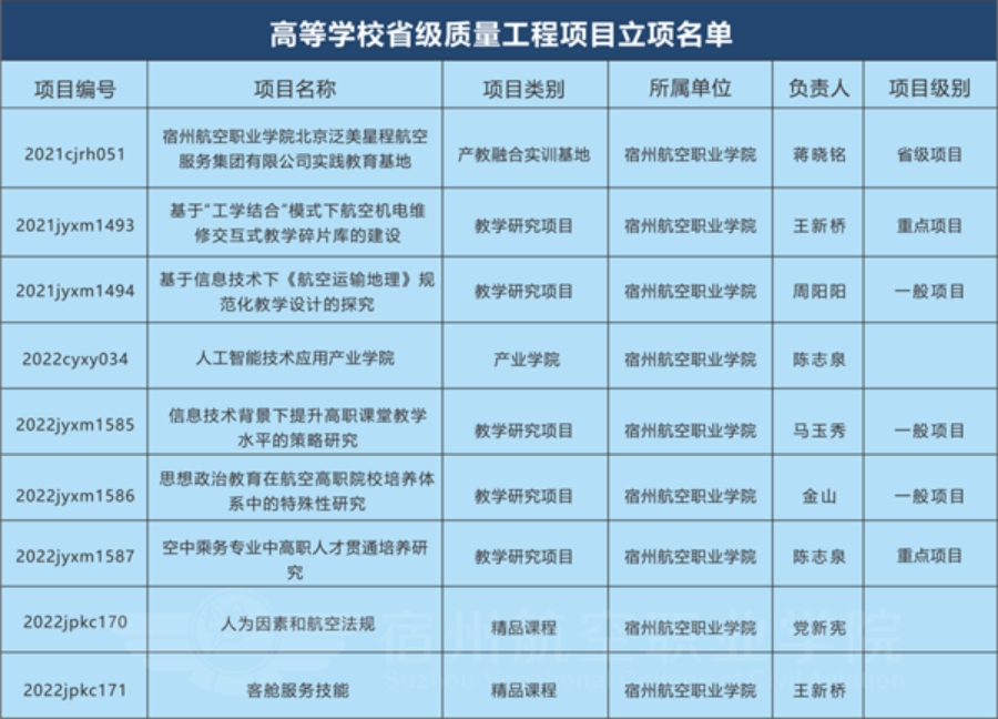 宿州航空職業(yè)學(xué)院高度重視科學(xué)研究,致力于在教學(xué)實(shí)踐工作中發(fā)現(xiàn)問題并積極探索解決問題的有效對策,學(xué)院組織校內(nèi)老師積極開展相關(guān)研究,不斷積累科研經(jīng)驗。其中,獲安徽省教育廳開展的高??茖W(xué)研究、高等學(xué)校省級質(zhì)量工程項目立項13項。
