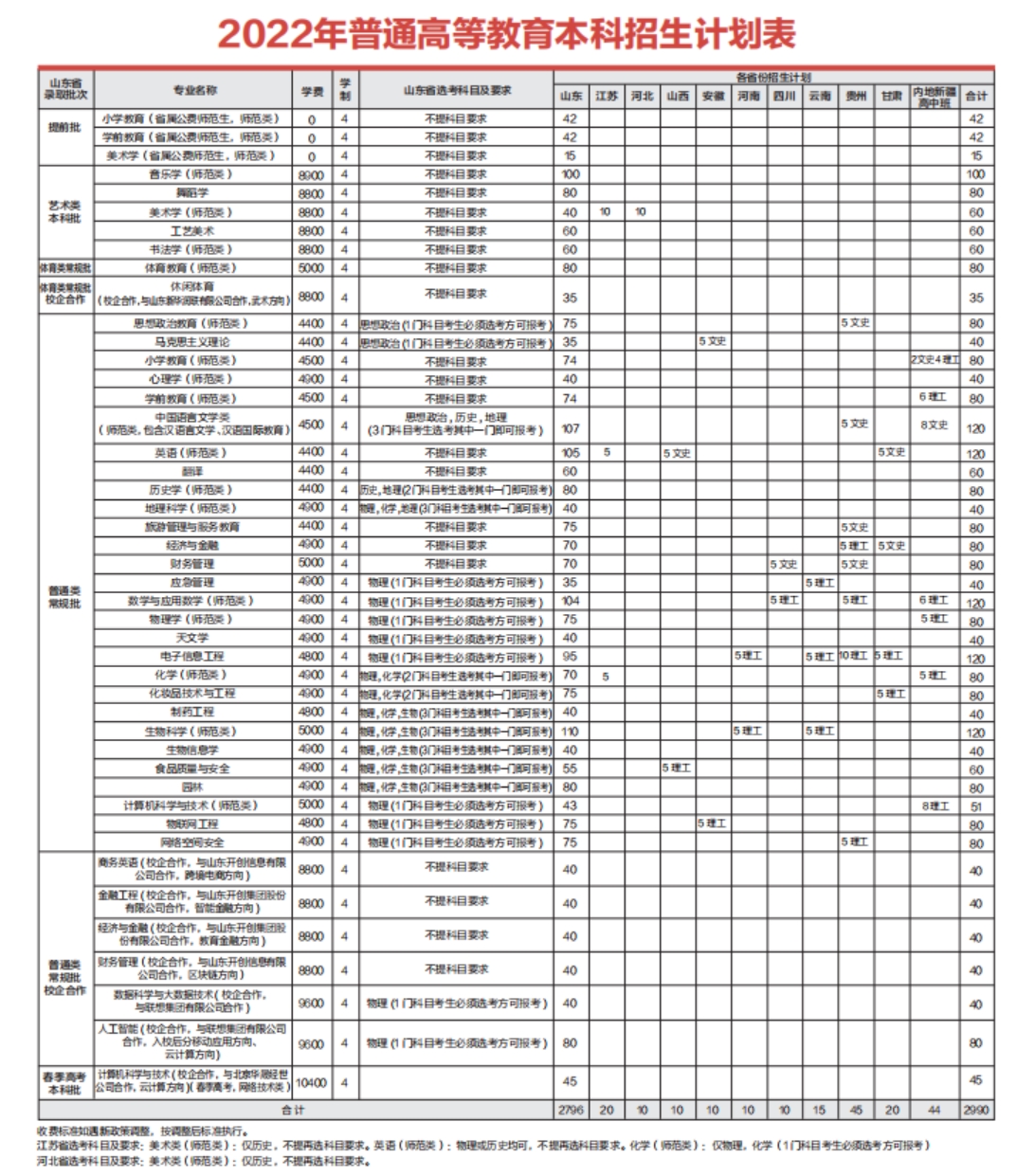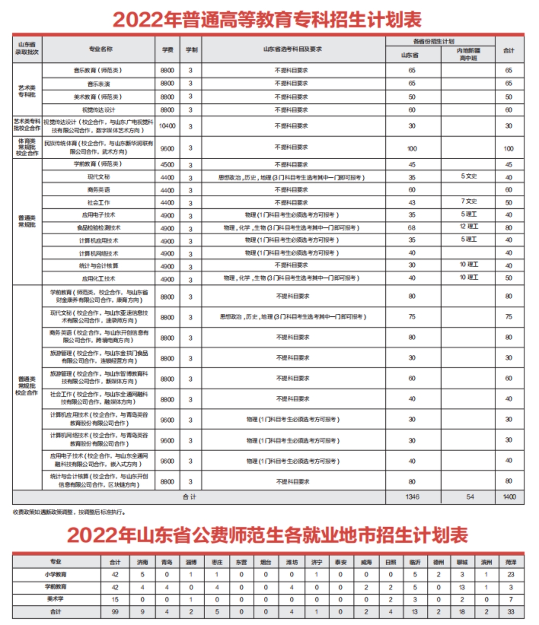 齊魯師范學(xué)院-2022年普通高等教育本科招生計(jì)劃表 / 2022年普通高等教育專科招生計(jì)劃表 / 2022年山東省公費(fèi)師范生各就業(yè)地市招生計(jì)劃表