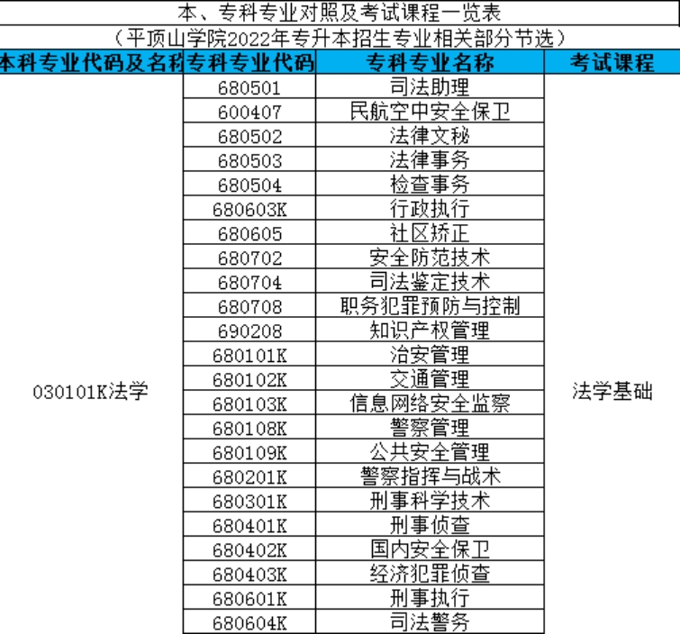 我校2022年專升本招生專業(yè)相關(guān)本??茖I(yè)對(duì)照及考試課程如下: