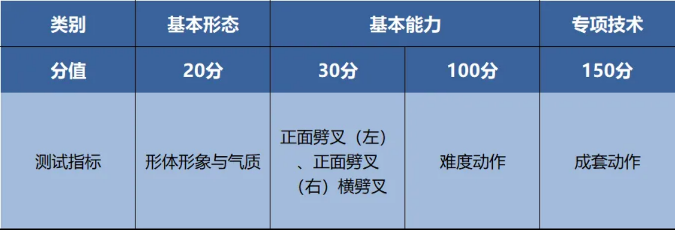 基本功考試內容主要有形體觀察、芭蕾集訓(基本功)。