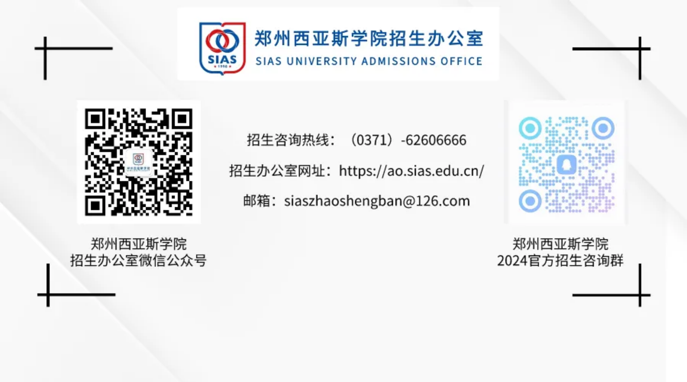 第十九條 聯(lián)系方式學校地址:河南省鄭州•新鄭市人民路東段168號招辦電話:0371-62606666招辦傳真:0371-62606000郵政編碼:451150招辦網(wǎng)址:https://ao.sias.edu.cn/