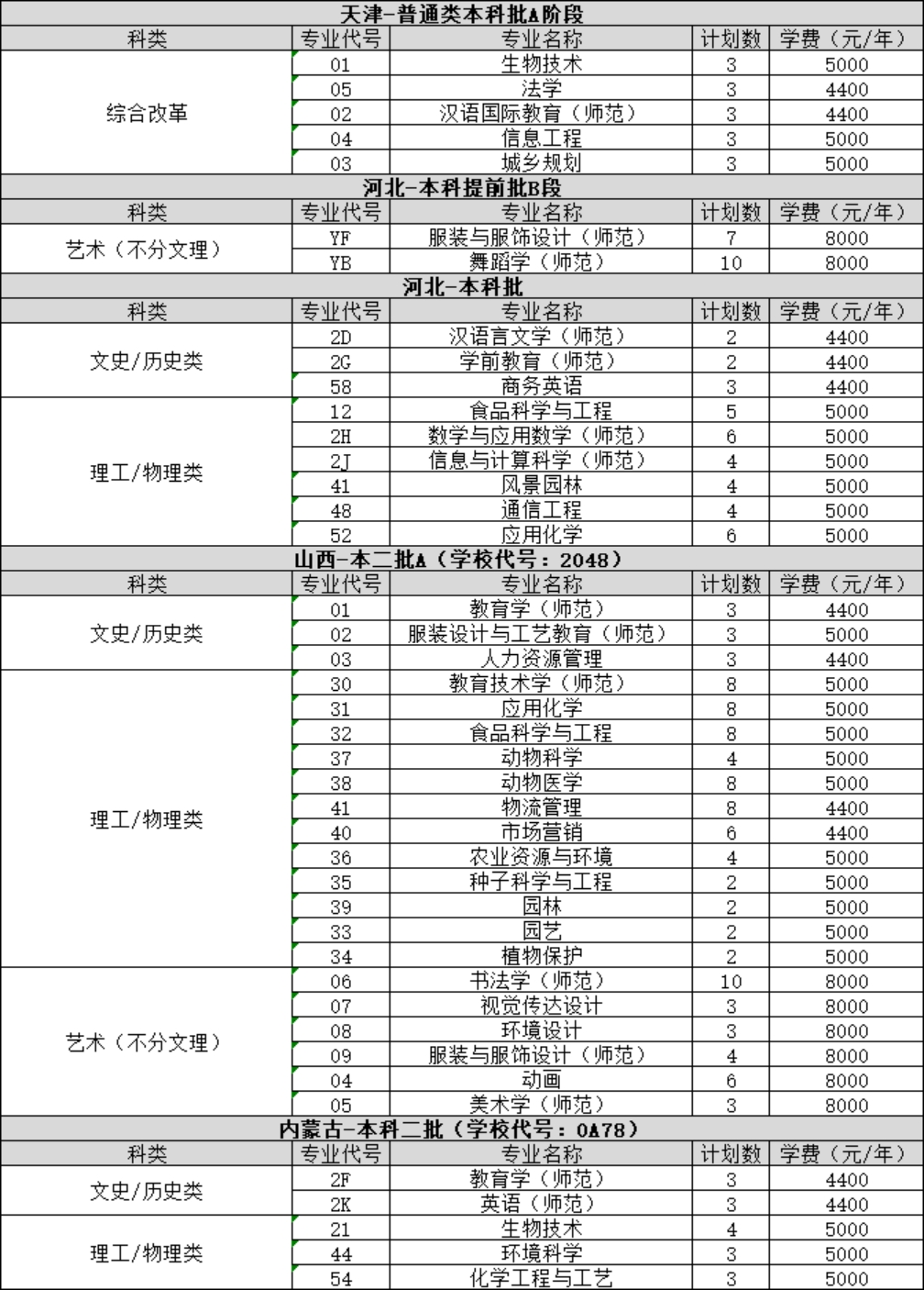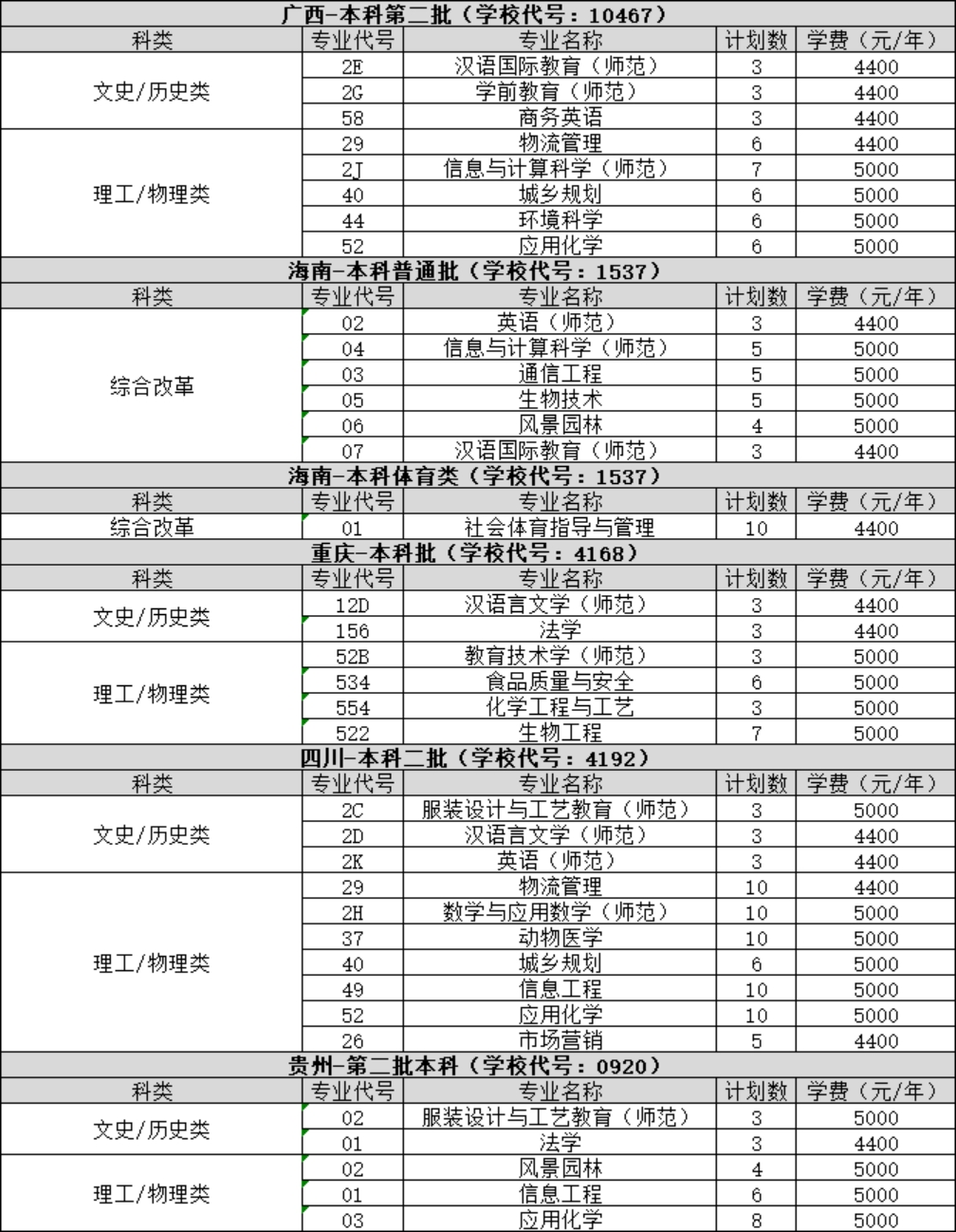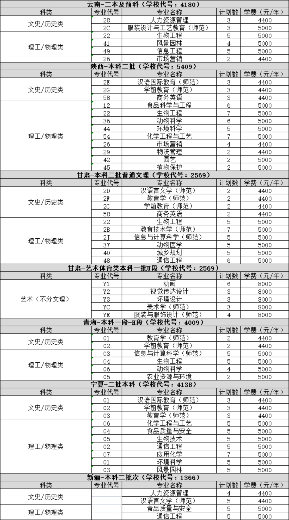2023年 : 河南科技學(xué)院-2023年省外-招生計劃