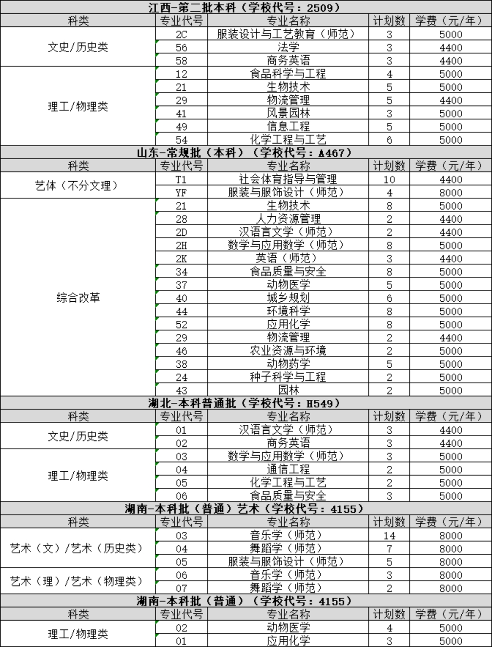 - 河南科技學(xué)院-2023年省外-招生計劃