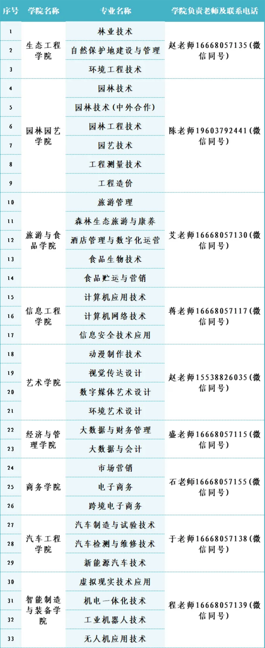 各專業(yè)負(fù)責(zé)老師及咨詢電話