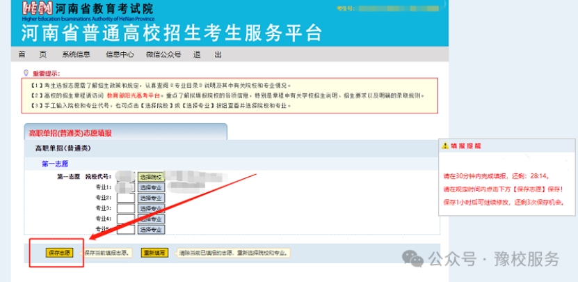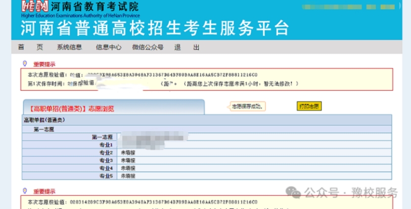 考生可以填寫1個(gè)院校,1-5個(gè)專業(yè),可填滿也可不填滿。填寫完成后點(diǎn)擊保存志愿。