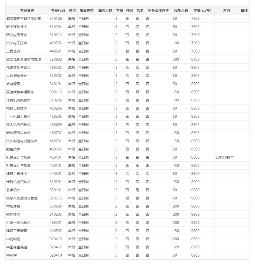 第二十條 學(xué)校單招各專業(yè)學(xué)費(fèi)標(biāo)準(zhǔn)為:普通三年制酒店管理與數(shù)字化運(yùn)營、數(shù)字媒體技術(shù)、移動應(yīng)用開發(fā)、汽車電子技術(shù)、工程造價(jià)、藥品生產(chǎn)技術(shù)專業(yè)7500元/年,嬰幼兒托育服務(wù)與管理、包裝策劃與藝術(shù)、大數(shù)據(jù)與會計(jì)、旅游管理、高速鐵路客運(yùn)服務(wù)、計(jì)算機(jī)網(wǎng)絡(luò)技術(shù)、電梯工程技術(shù)、工業(yè)機(jī)器人技術(shù)、無人機(jī)應(yīng)用技術(shù)、新能源汽車技術(shù)、汽車制造與試驗(yàn)技術(shù)、數(shù)控技術(shù)、機(jī)械設(shè)計(jì)與制造(3D打?。?、機(jī)械設(shè)計(jì)與制造、建筑工程技術(shù)、中藥制藥專業(yè)學(xué)費(fèi)8300元/年,計(jì)算機(jī)應(yīng)用技術(shù)、中醫(yī)養(yǎng)生保健、中藥學(xué)專業(yè)學(xué)費(fèi)8900元/年,藝術(shù)設(shè)計(jì)、高爾夫球運(yùn)動與管理、市場營銷、軟件技術(shù)、機(jī)電一體化、建設(shè)工程管理專業(yè)學(xué)費(fèi)9800元/年,空調(diào)間住宿費(fèi)收費(fèi)標(biāo)準(zhǔn)為1270元/年。