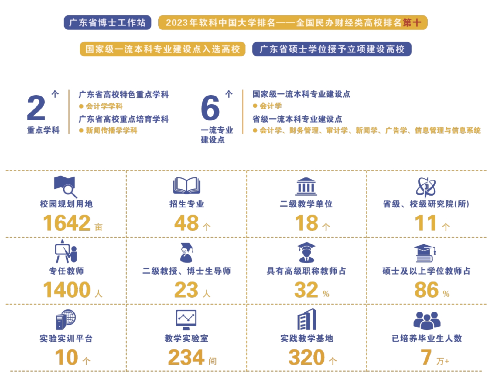 學(xué)校先后榮獲“廣東省十佳獨(dú)立學(xué)院”、“中國民辦高等教育優(yōu)秀院?!?、“廣東省最具就業(yè)競爭力獨(dú)立學(xué)院”和“廣東省最具綜合實(shí)力學(xué)院”、“中國財(cái)經(jīng)類獨(dú)立學(xué)院排名第3位”等稱號(hào)。