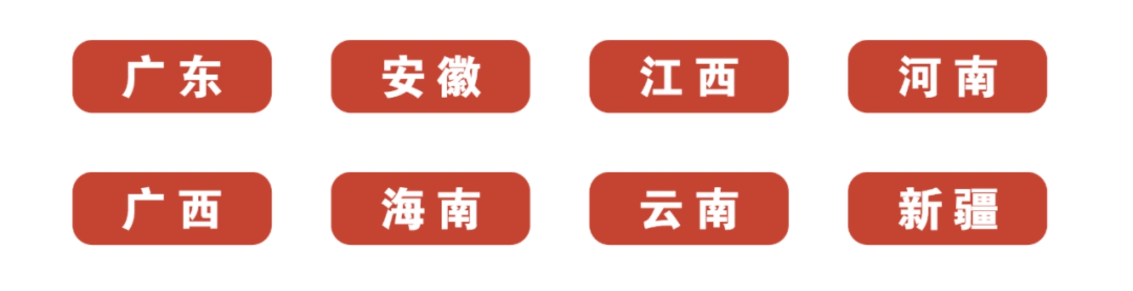 省外(安徽、江西、河南、廣西、海南、云南、新疆)