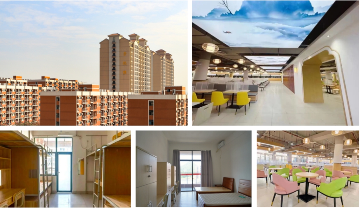 學(xué)校學(xué)生宿舍類型設(shè)有三人間、四人間及六人間,所有的宿舍都配備空調(diào)、飲水機(jī)、洗衣機(jī)、獨(dú)立衛(wèi)浴以及陽臺(tái);各教學(xué)樓、實(shí)驗(yàn)樓、飯?zhí)镁鶎?shí)現(xiàn)空調(diào)全覆蓋。