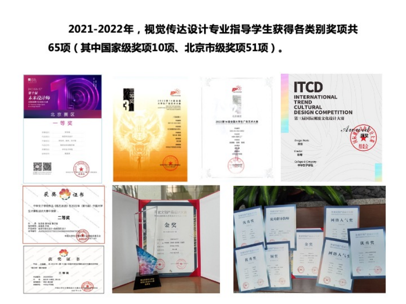 視覺傳達設計專業(yè)從人才培養(yǎng)、科學研究、社會服務和文化傳承四個方面全面加強協(xié)同育人機制,將科技與藝術(shù)、文化與傳承、可持續(xù)與包容的學科交叉的設計理念融入培養(yǎng)環(huán)節(jié),設置學科素養(yǎng)平臺課程、專業(yè)基礎(chǔ)課程、專業(yè)方向性課程,有目的、分階段地強化視覺傳達設計人才在基礎(chǔ)階段的廣度和專業(yè)培養(yǎng)階段的深度,以提升畢業(yè)學生在人才市場中的競爭力以及在未來設計工作中的適應能力。在新媒介融合的大環(huán)境下,圍繞視覺傳達設計專業(yè)特點,使學生通過對視覺傳達兒童與家庭、視覺傳達傳統(tǒng)文化創(chuàng)新、視覺傳達女性發(fā)展三個核心課程模塊的遞進式學習,掌握數(shù)字媒體、網(wǎng)絡媒體、社會化媒體的綜合設計實踐能力。在專業(yè)教學中將課程實踐與兒童發(fā)展、家庭美育、女性發(fā)展、中國文化傳承與創(chuàng)新內(nèi)容相結(jié)合,打造了一系列具有特色的教學課程,其中包括北京市高校優(yōu)質(zhì)本科課程,學生作品多次獲得國家級與北京市級獎項。