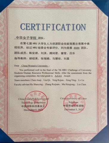 8.完成規(guī)定的學時、學分及相關(guān)要求,考核合格頒發(fā)“中華女子學院卓越畢業(yè)生”證書,同時獲得“中華女子學院優(yōu)秀畢業(yè)生”稱號。