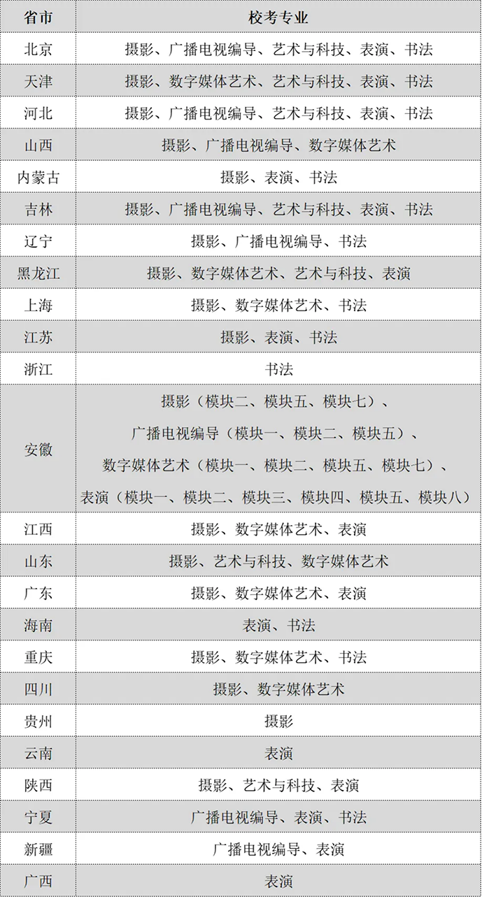 3.數(shù)字媒體藝術(shù)、廣播電視編導、攝影、表演、藝術(shù)與科技、書法專業(yè)在部分省份須參加我校???;