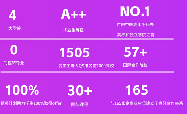 2019—2022年,連續(xù)四年在武書(shū)連中國(guó)高水平獨(dú)立學(xué)院排行榜中,嘉華學(xué)院新生質(zhì)量與畢業(yè)生質(zhì)量跨等級(jí)最多,D+等級(jí)入學(xué),A++等級(jí)畢業(yè),獲得“本科畢業(yè)生質(zhì)量第一名”及“本科畢業(yè)生升學(xué)率第一名”。