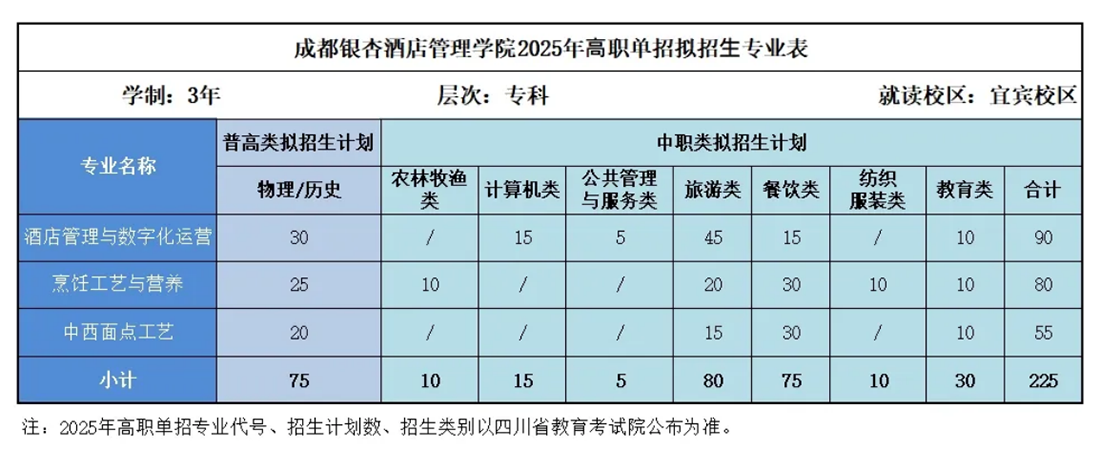 成都銀杏酒店管理學(xué)院2025年高職單招報(bào)考指南