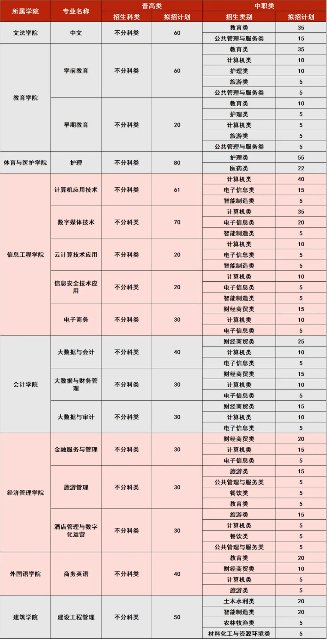 3.高職單招各專業(yè)學制均為3年。