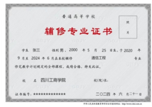 (一)本科主修和輔修專業(yè)同時進行畢業(yè)資格審查,取得輔修專業(yè)培養(yǎng)方案規(guī)定的所有修讀學分,且獲得主修專 業(yè)本科畢業(yè)證書的,頒發(fā)教育部認可的四川工商學院輔修專業(yè)證書(可在教育部學信網上進行電子注冊和查詢)。