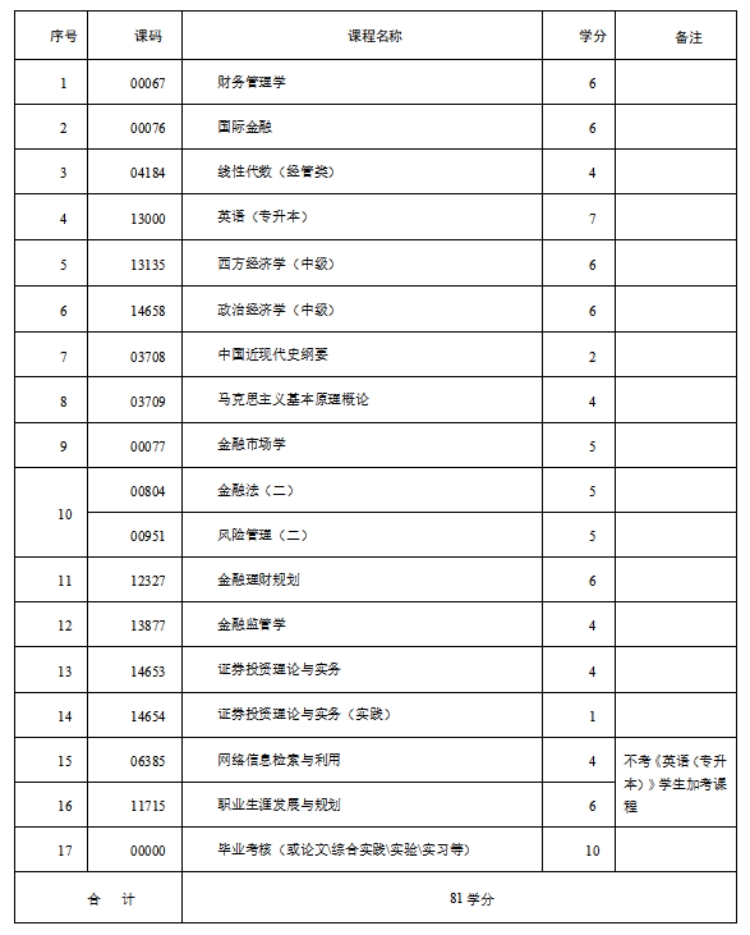 金融學(xué)(專升本)專業(yè)課程設(shè)置與學(xué)分