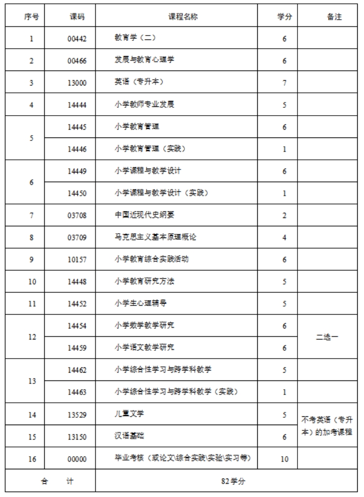 小學(xué)教育(專升本)專業(yè)課程設(shè)置與學(xué)分